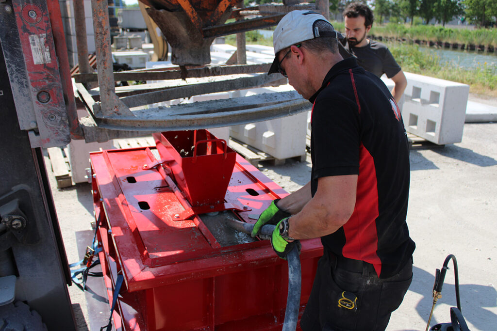 Eine mechanische Betonblock-Klemme ist ein Scherengreifer, der vollautomatisch von einem Kran, einem Ladekran (HIAB) oder einem Gabelstapler aus bedient werden kann, ohne dass der Fahrer die Sicherheit seine Fahrerkabine verlassen muss. Die mechanische Hebeklemme minimiert die Pendelbewegungen des Betonblocks während des Hebens und macht eine präzise Positionierung möglich.